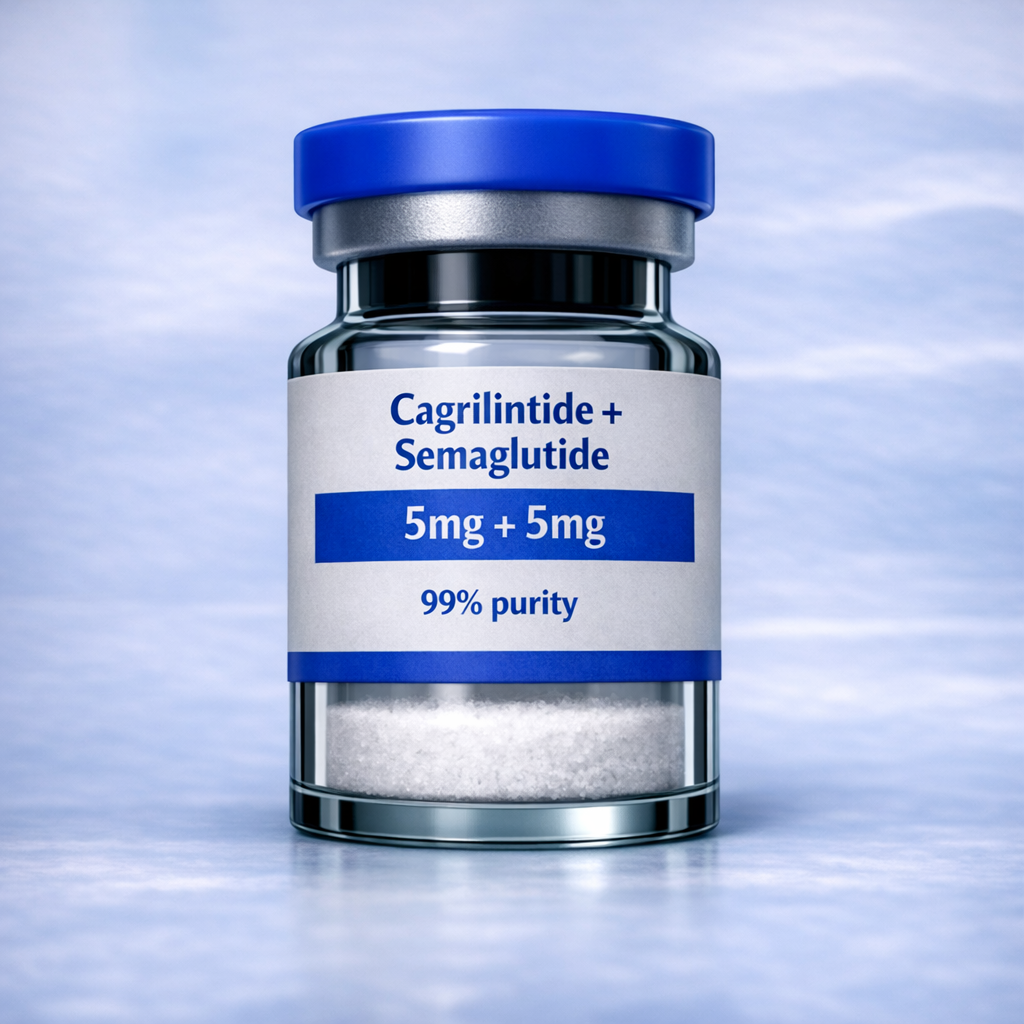 Each vial contains 5mg of Cagrilintide and 5mg of Semaglutide, produced under strict laboratory-grade standards. This ensures maximum purity, stability, and reproducibility, making it ideal for controlled research and experimental applications.